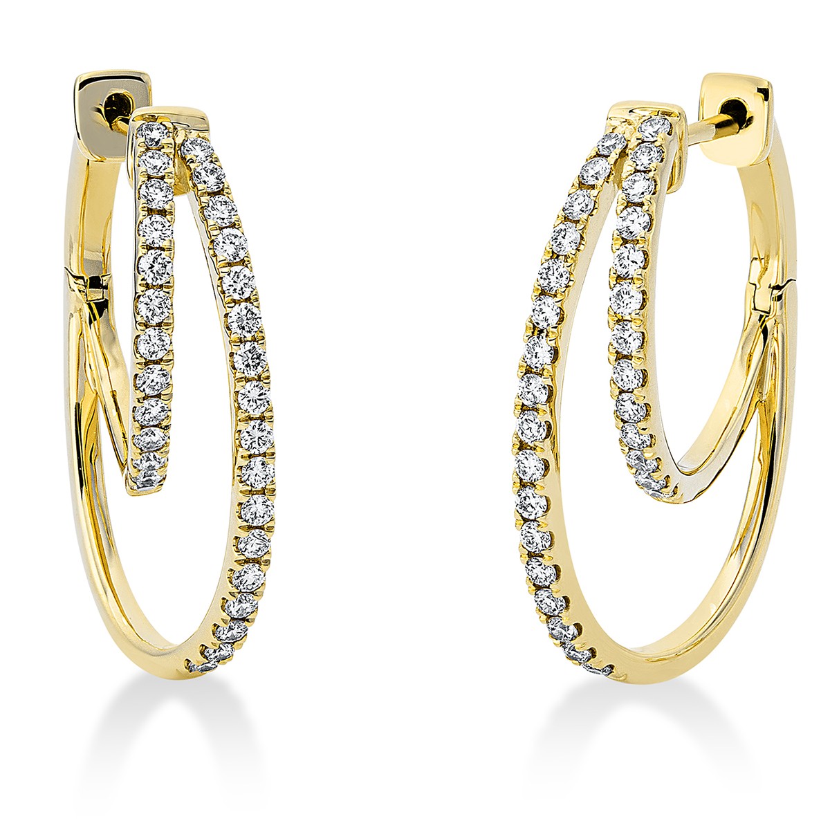 huggies 18 kt YG, 60 diamonds 0,52 ct, G-si, h:23,3 mm, w:16,3 mm, th:5,2 mm