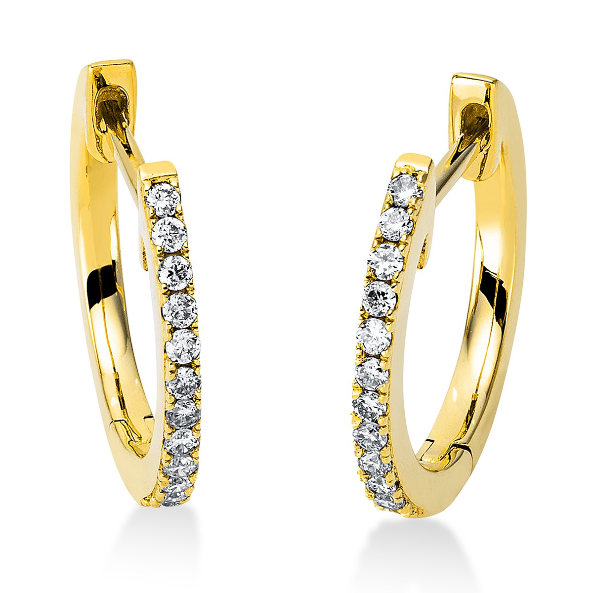 huggies 18 kt YG, 24 diamonds 0,16 ct, G-si, h:13,8 mm, w:14,5 mm, th:1,3 mm