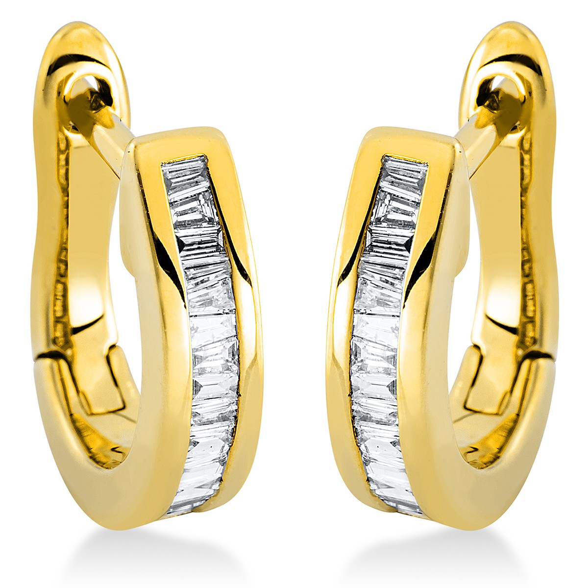 huggies 18 kt YG, 32 tapers 0,17 ct, G-vsi, h:11,2 mm, w:9,2 mm, th:2,8 mm