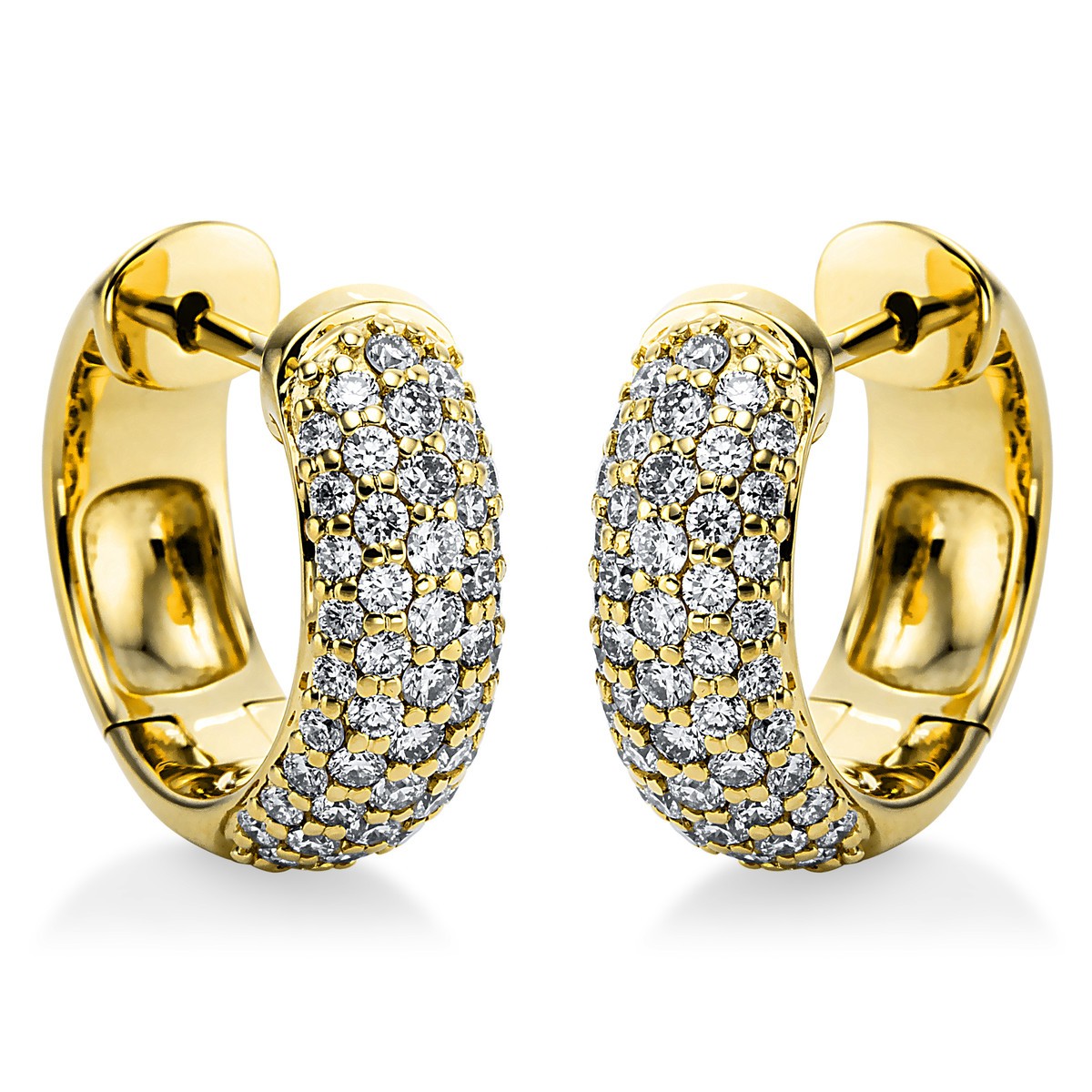 huggies 18 kt YG, 98 diamonds 0,98 ct, G-si, h:15,0 mm, w:16,1 mm, th:5,3 mm